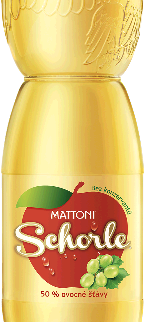 Mattoni Schorle with apple and grape contains exactly half pure sweet apples and refreshing grape juice, and exactly a half Mattoni sparkling water from unspoilt nature. Mmm!